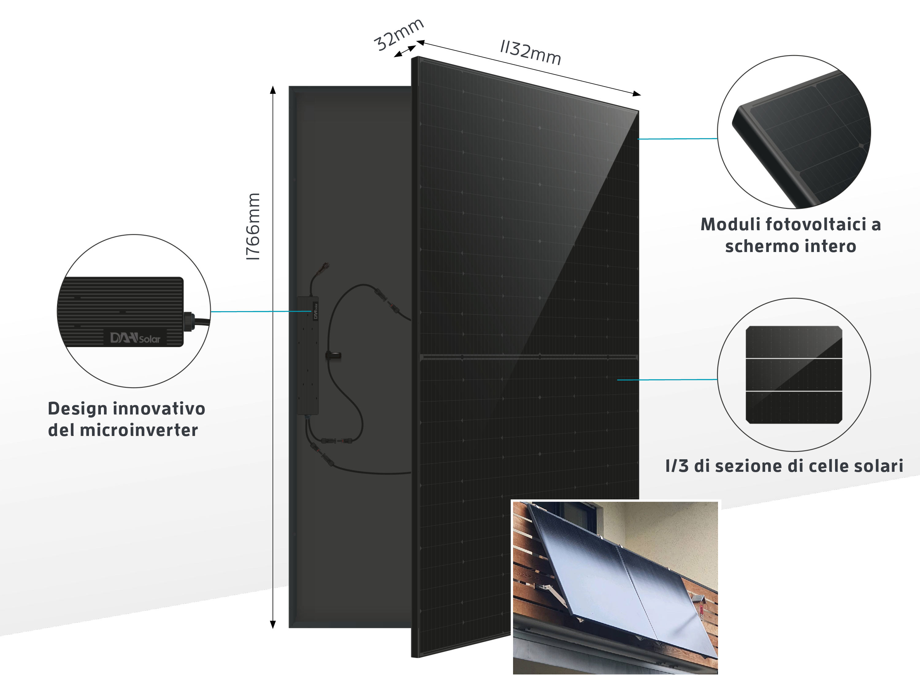 I nostri moduli solari senza cornice sono un innovativo sistema fotovoltaico appositamente progettato per i balconi. Dopo una semplice installazione in pochi passaggi, potrai godere di energia pulita. Riduci i costi dell’elettricità e fai il primo passo verso un futuro sostenibile, il tutto comodamente dal tuo balcone!